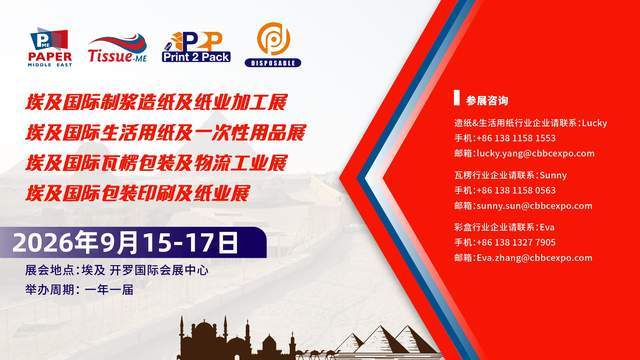 其中,瓦楞包装展区将集中呈现低克重高强度纸板、纳米涂层防潮技术等创新成果,助力埃及蔬果出口、家电内包装及冷链物流等领域实现绿色升级。埃及政府通过“限塑令”推动的绿色转型已初见成效,2026年塑料替代率预计突破60%,为纸包装企业创造千亿级市场空间。中国参展企业将携前沿技术深度参与,通过“技术+设备+原料”的闭环生态,助力埃及构建覆盖中东非、辐射欧亚非三大洲的供应链网络,为全球包装产业增长注入新动能。返回搜狐,查看更多